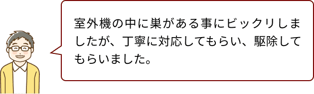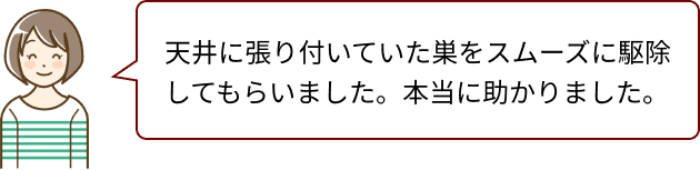 1週間以内に万が一同じ場所へ再び巣ができてしまった場合はご連絡ください。