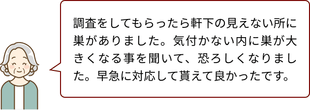 ご自身やご家族の安全、ご近所様にハチ被害が及んでしまう前にご相談ください。